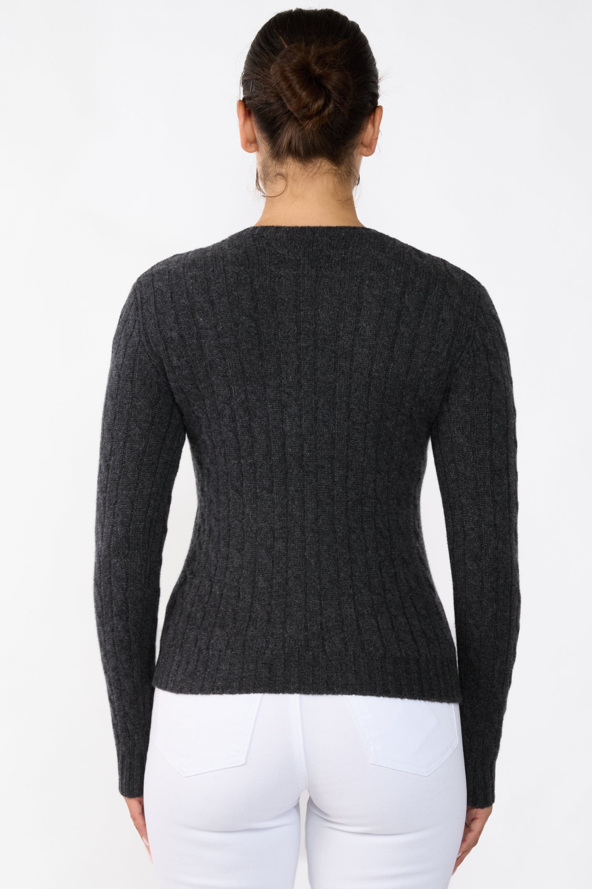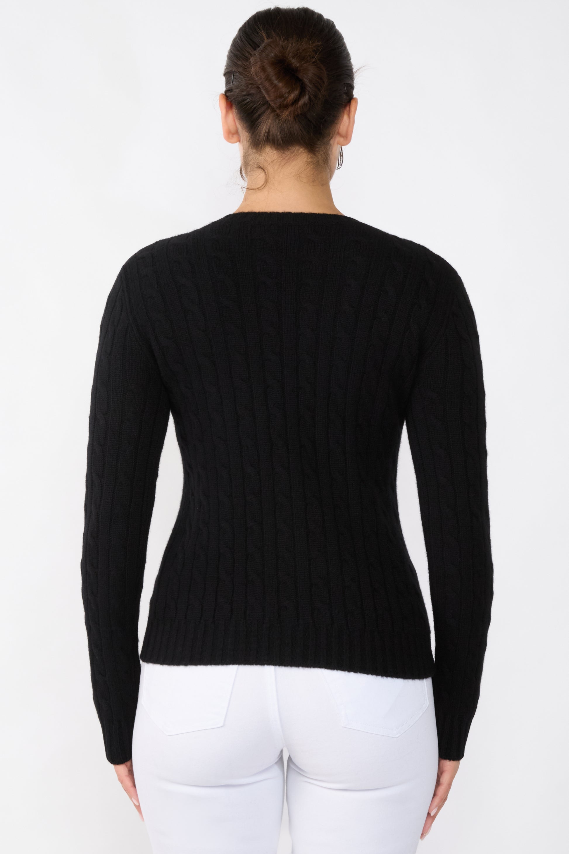 JENNIE LIU 100% Cashmere Crewneck Sweater | Chuncky Cashmere Cable-knit Sweaters for Women