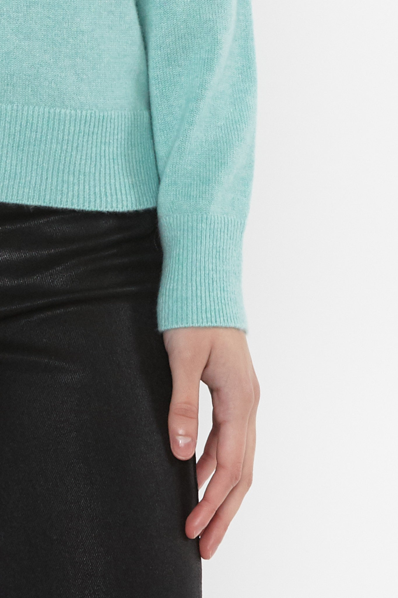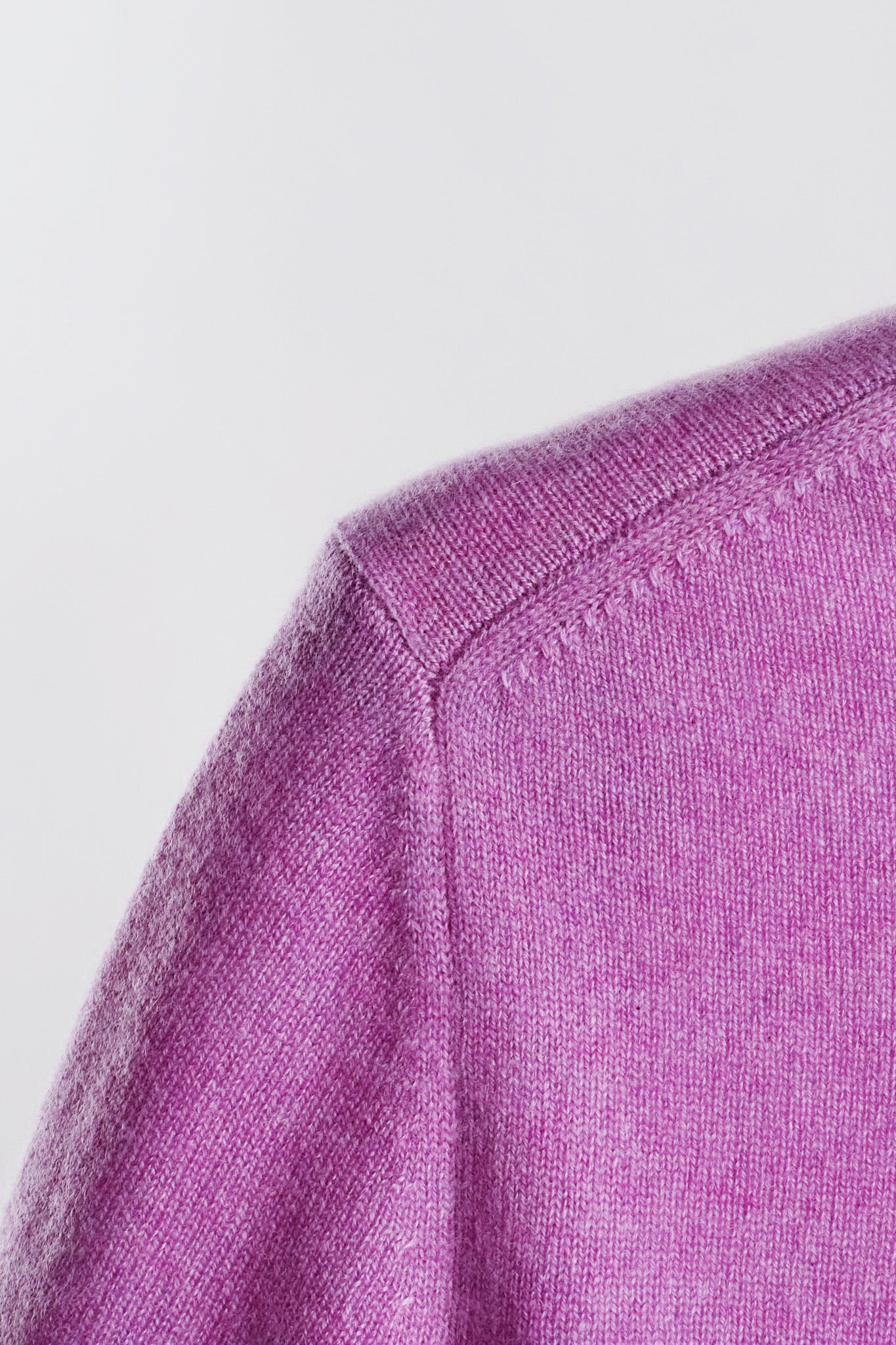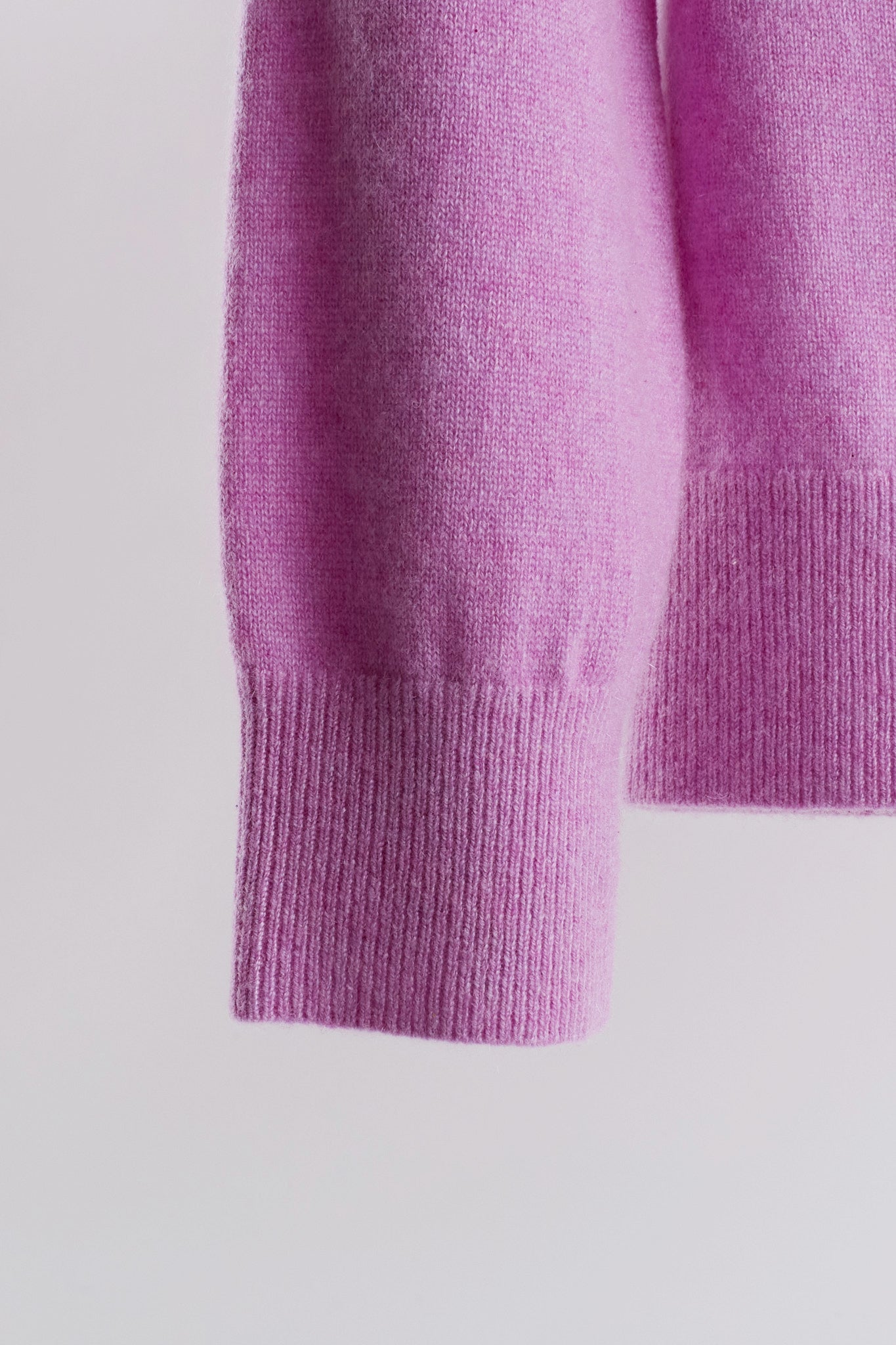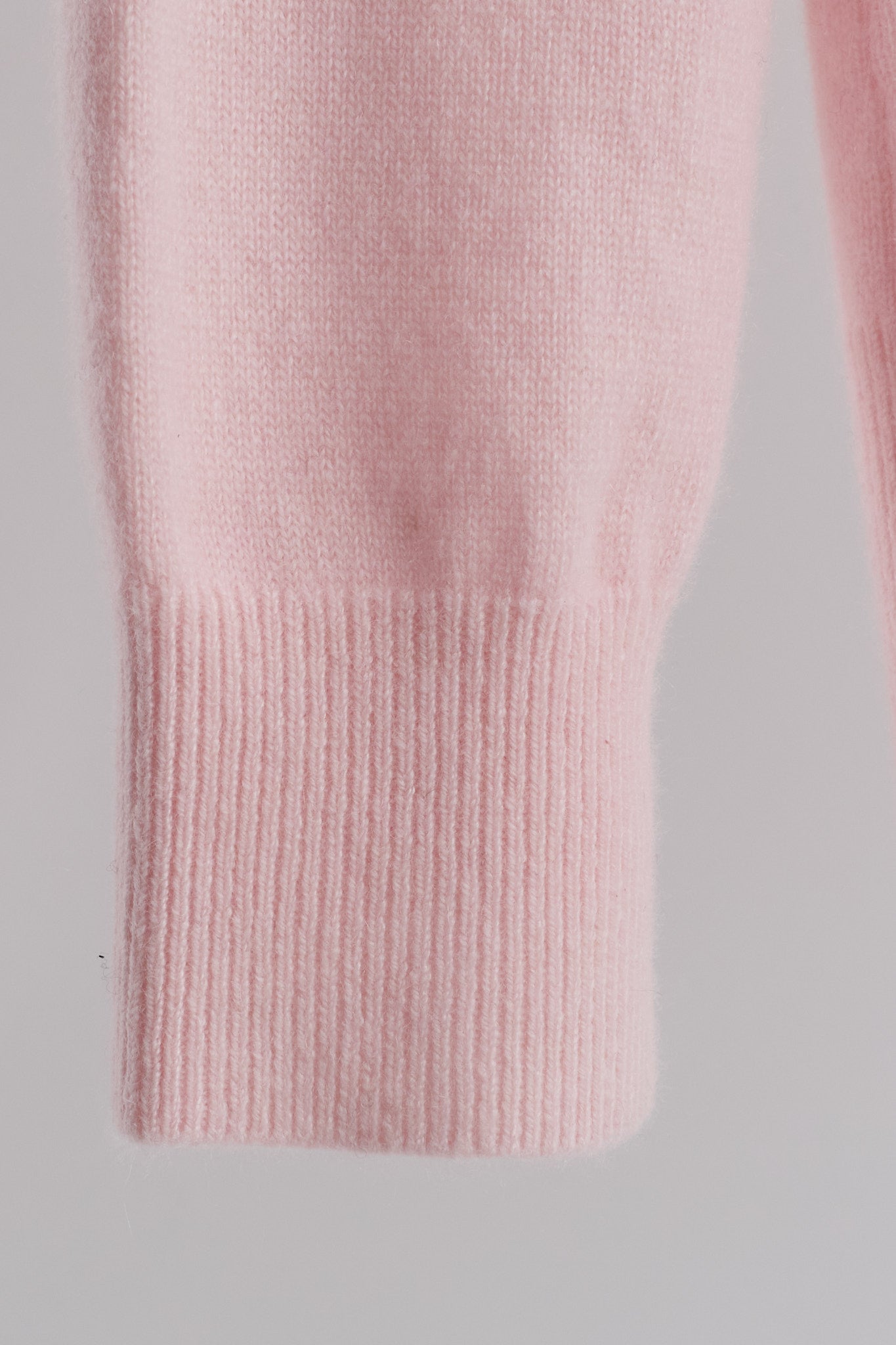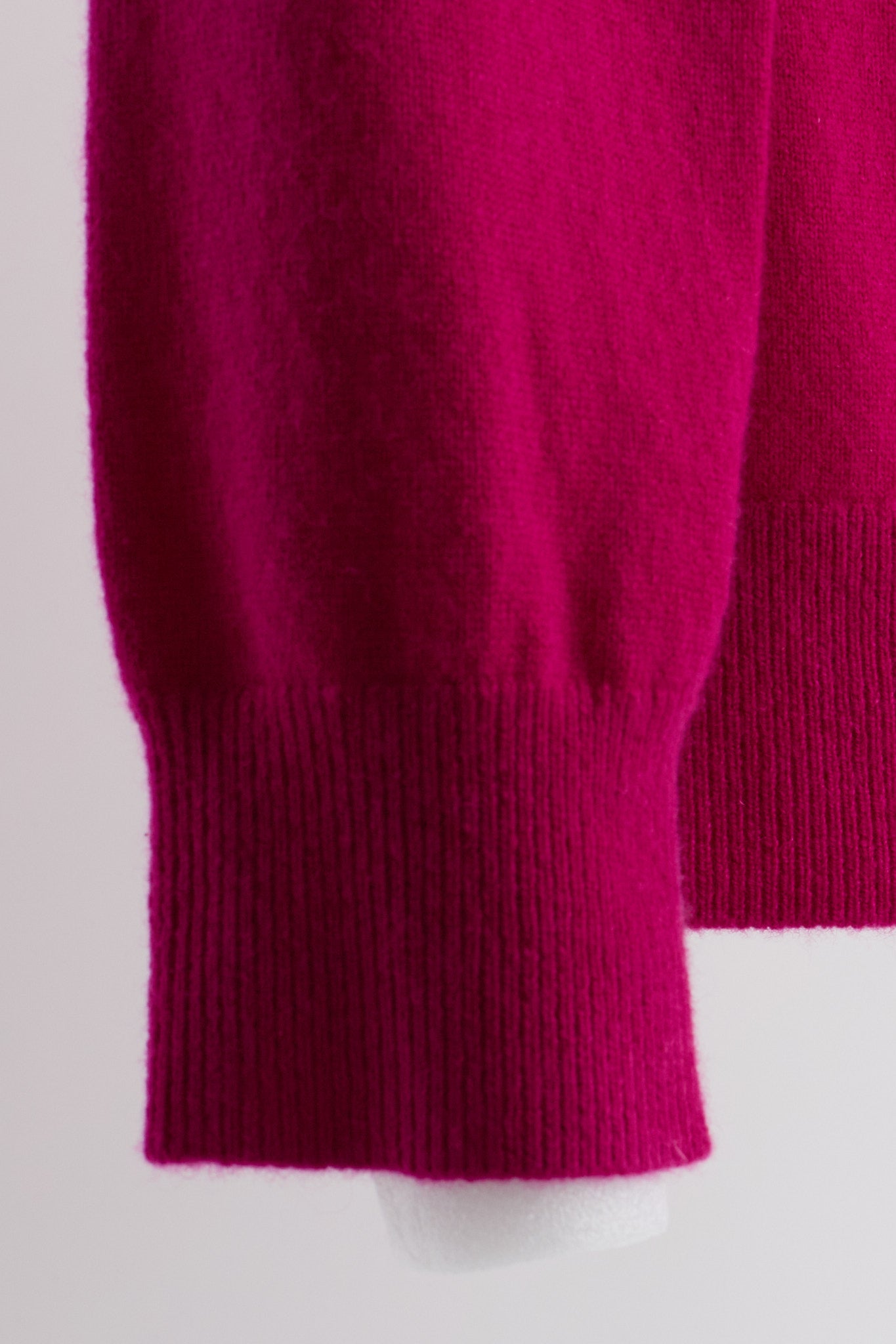 First quality premium cashmere cardigan sweater with shell button front closure on clean self-facing placket.