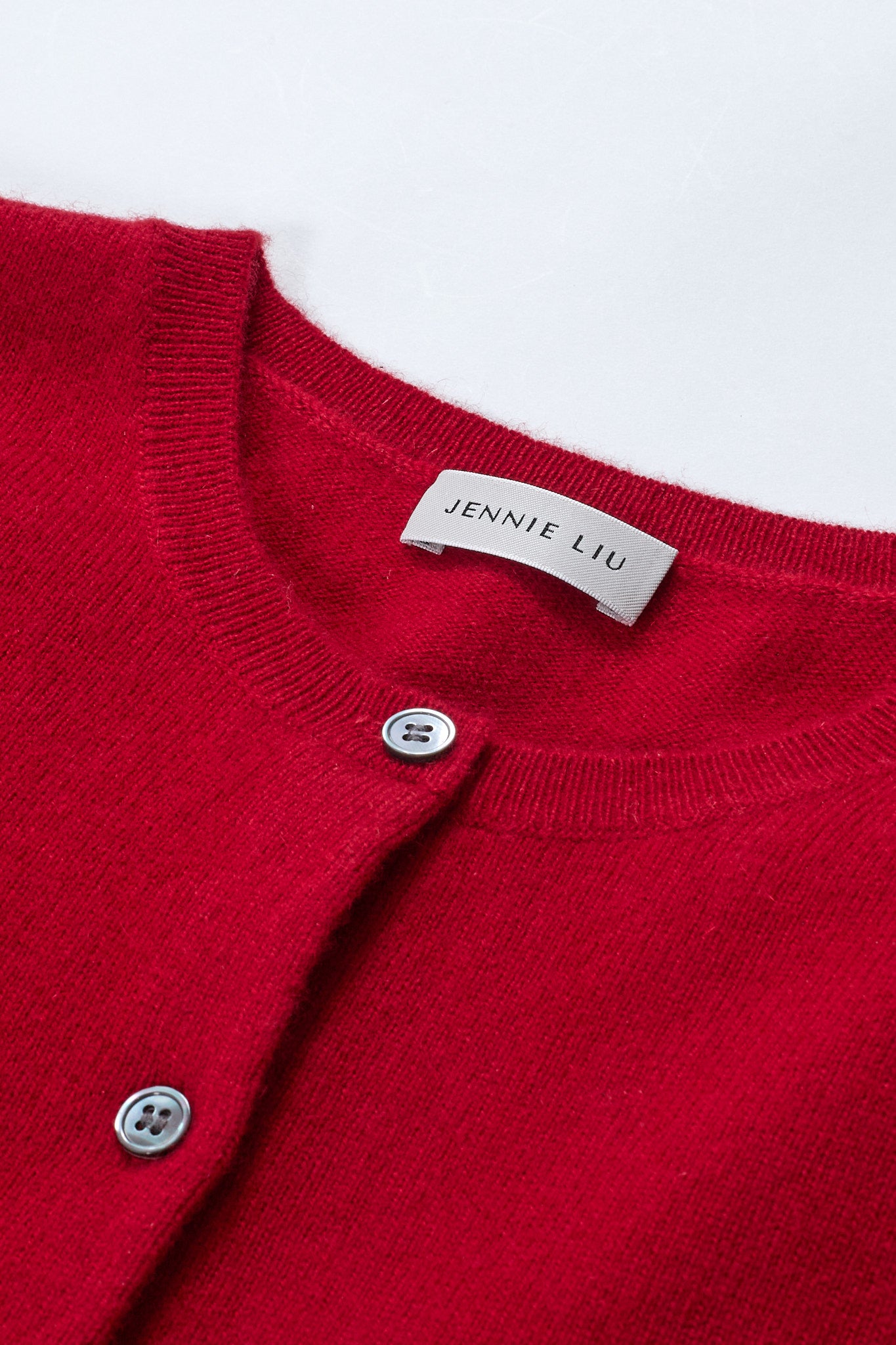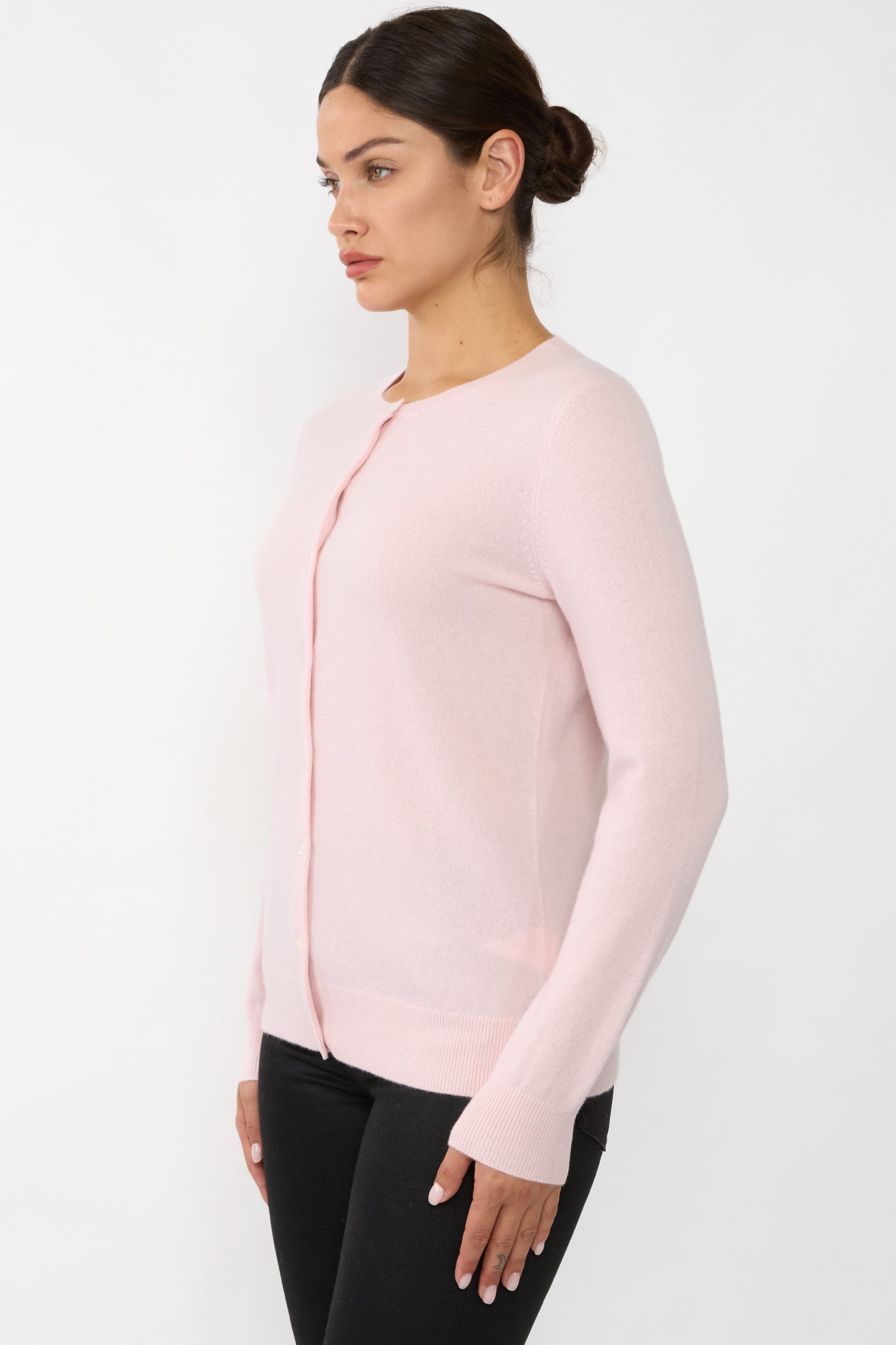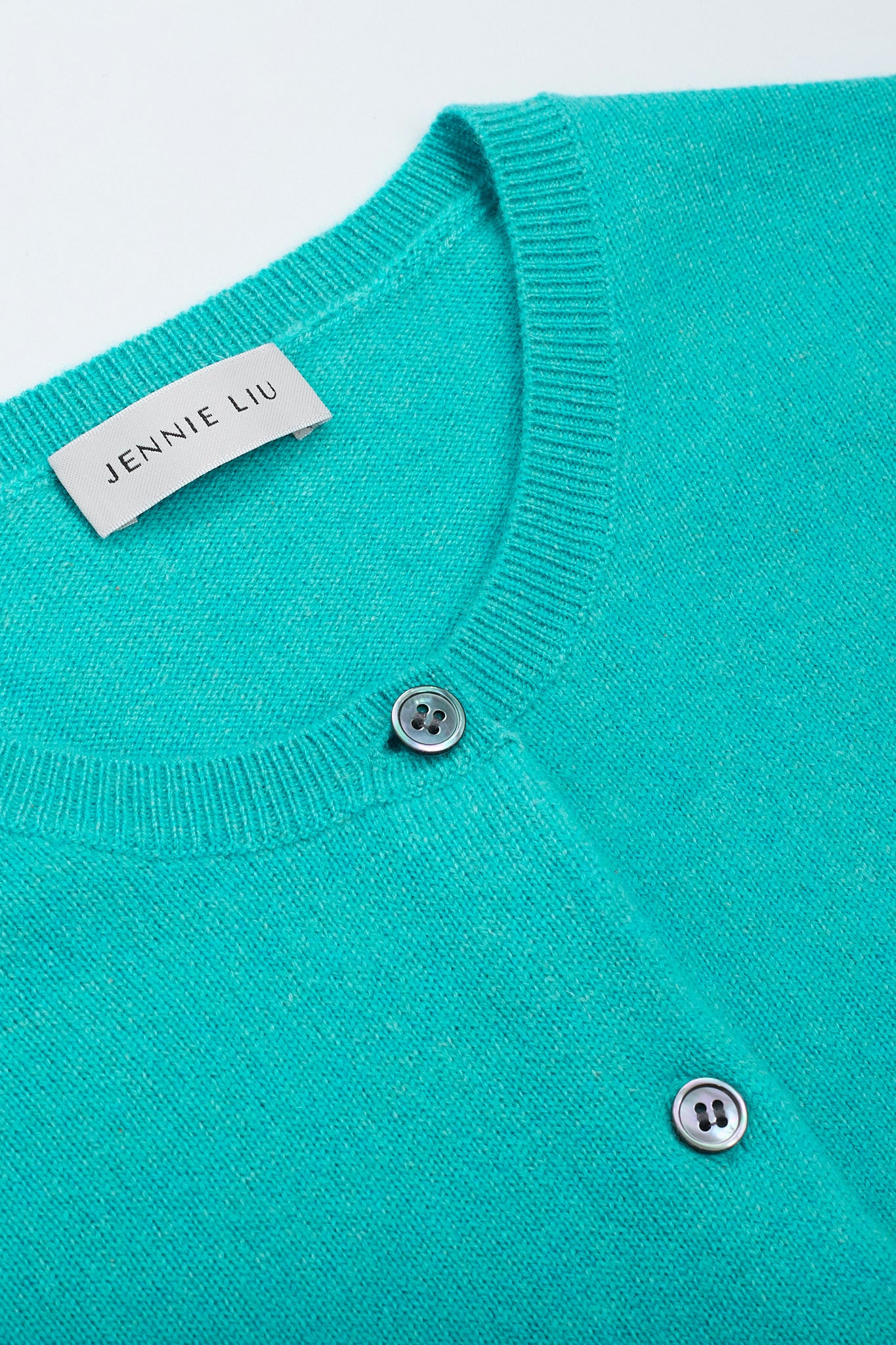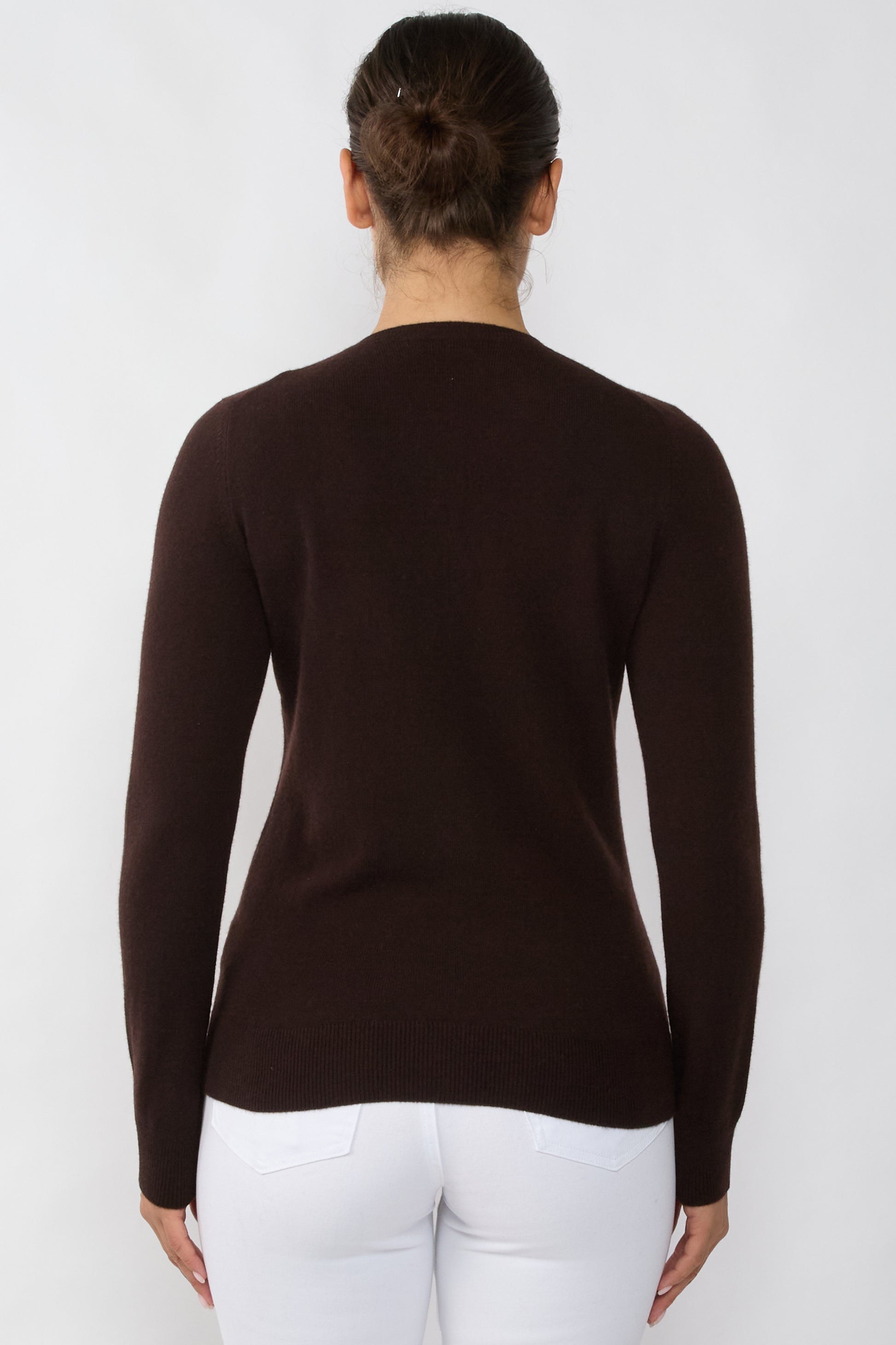 JENNIE LIU Women's 100% Cashmere Button Front Long Sleeve Crewneck Cardigan Sweater
