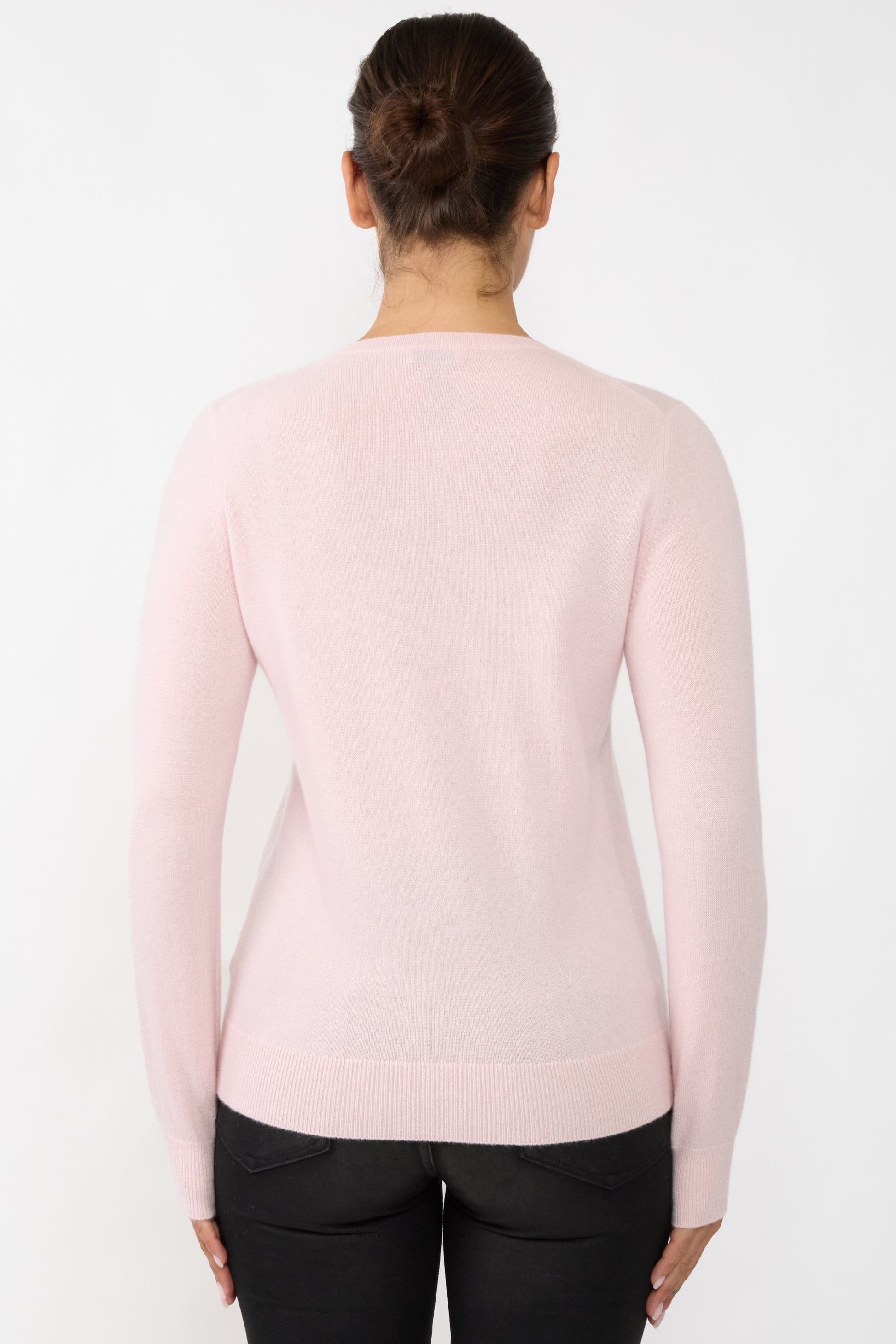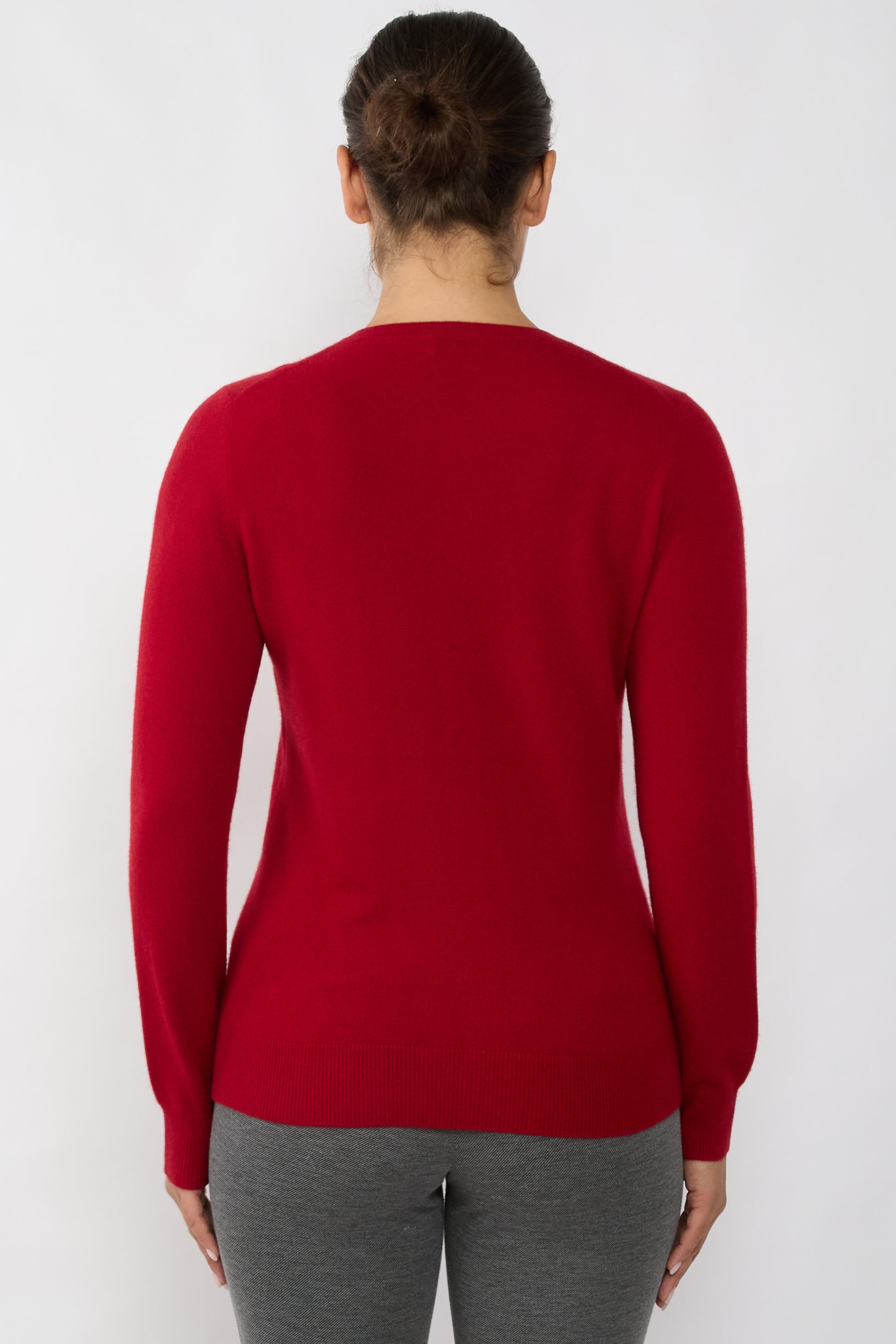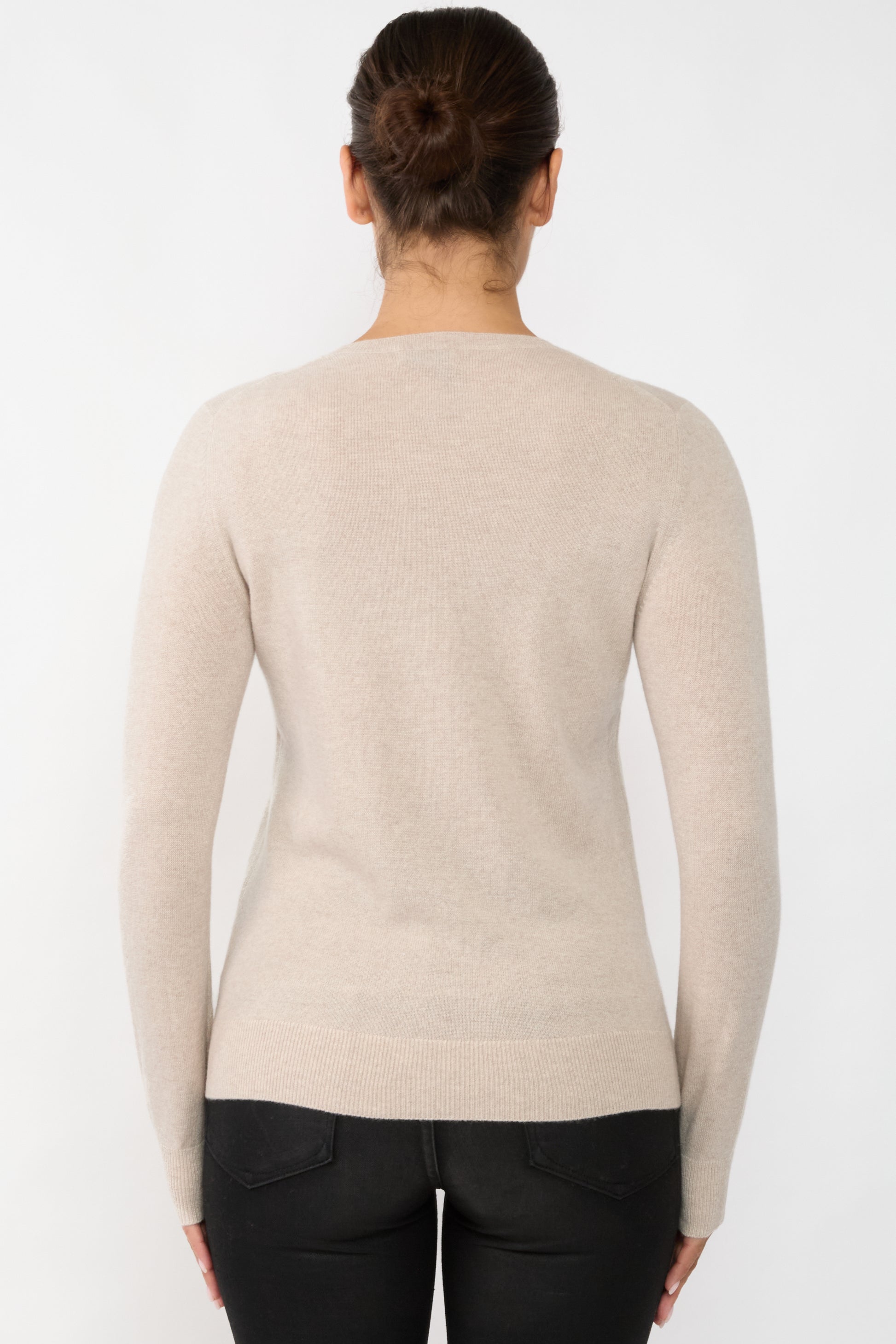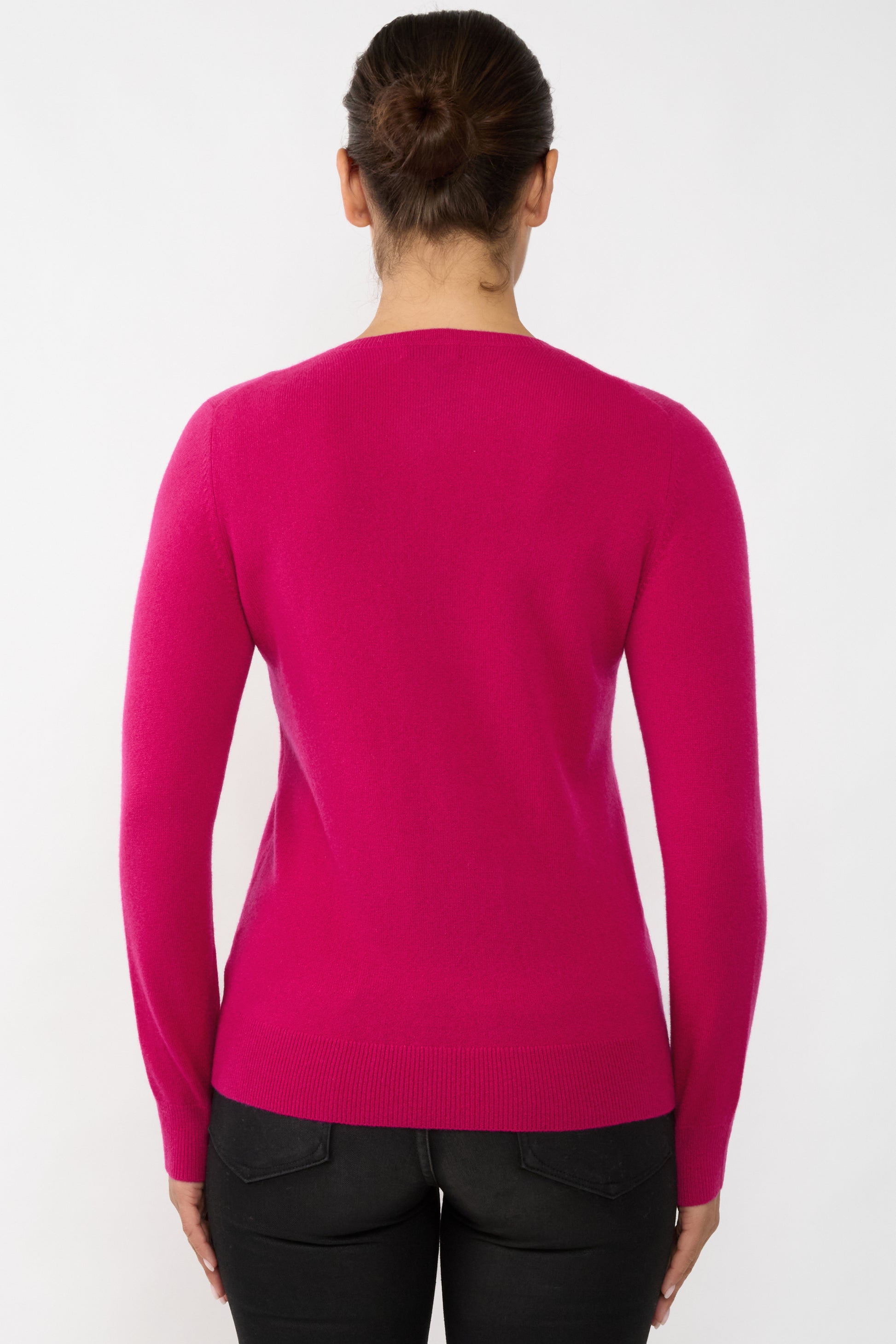 JENNIE LIU Women's 100% Cashmere Button Front Long Sleeve Crewneck Cardigan Sweater