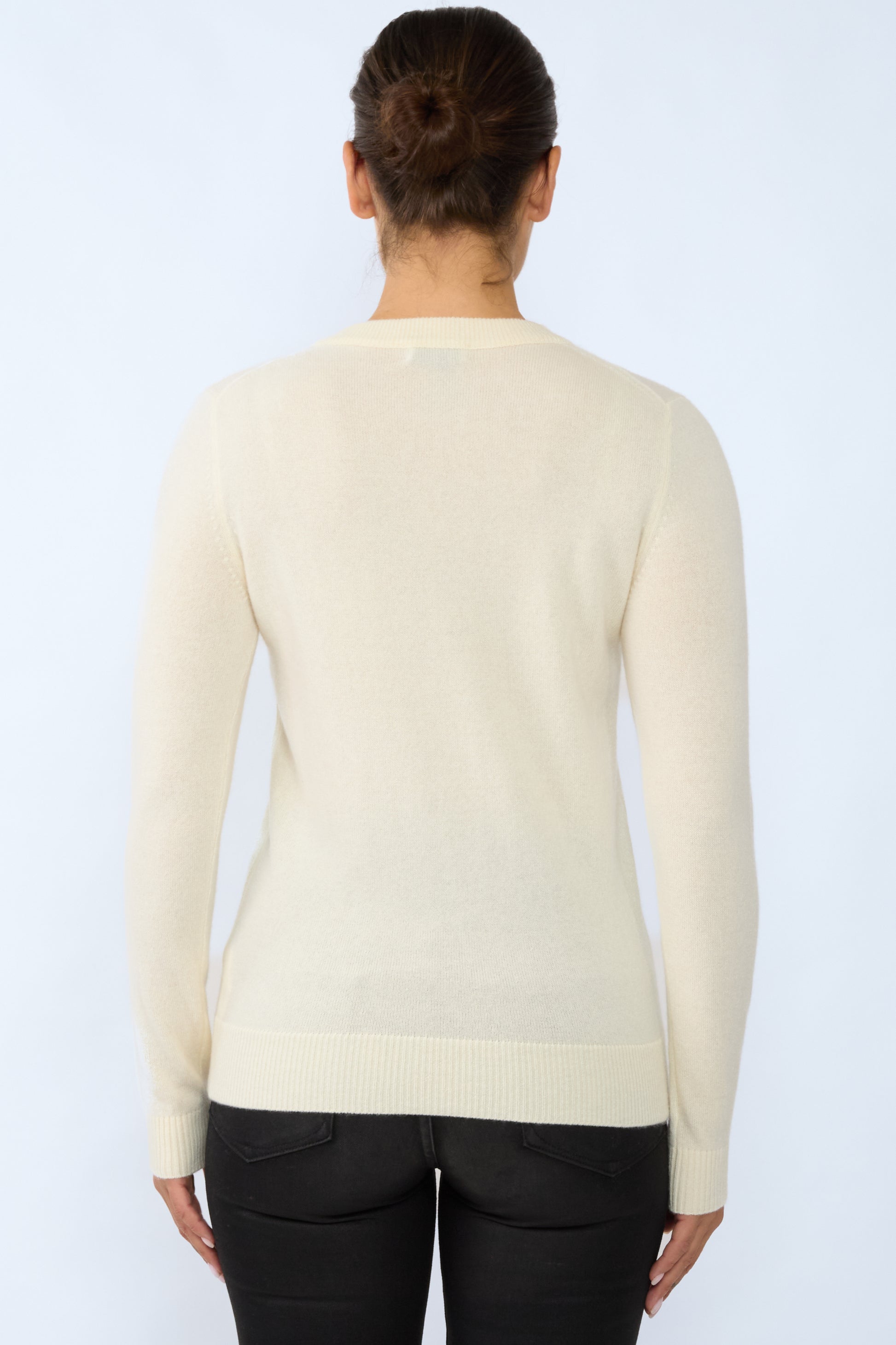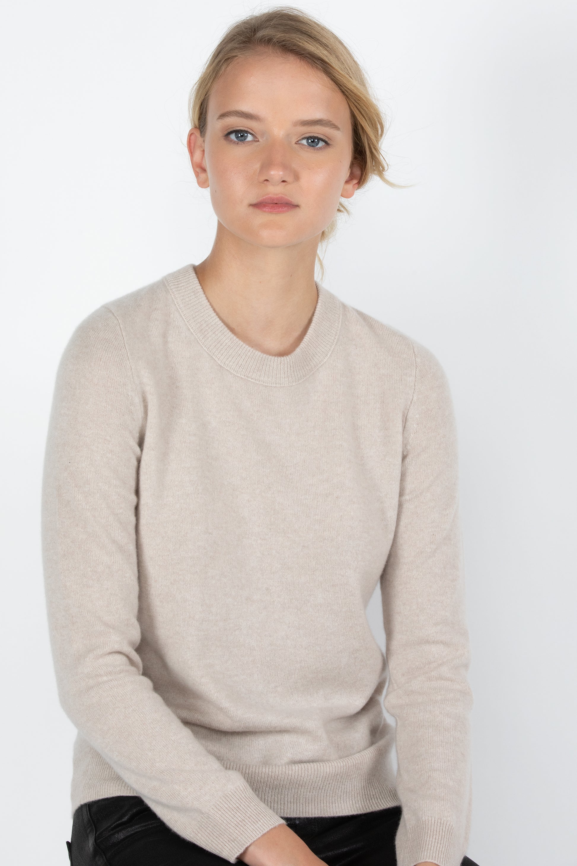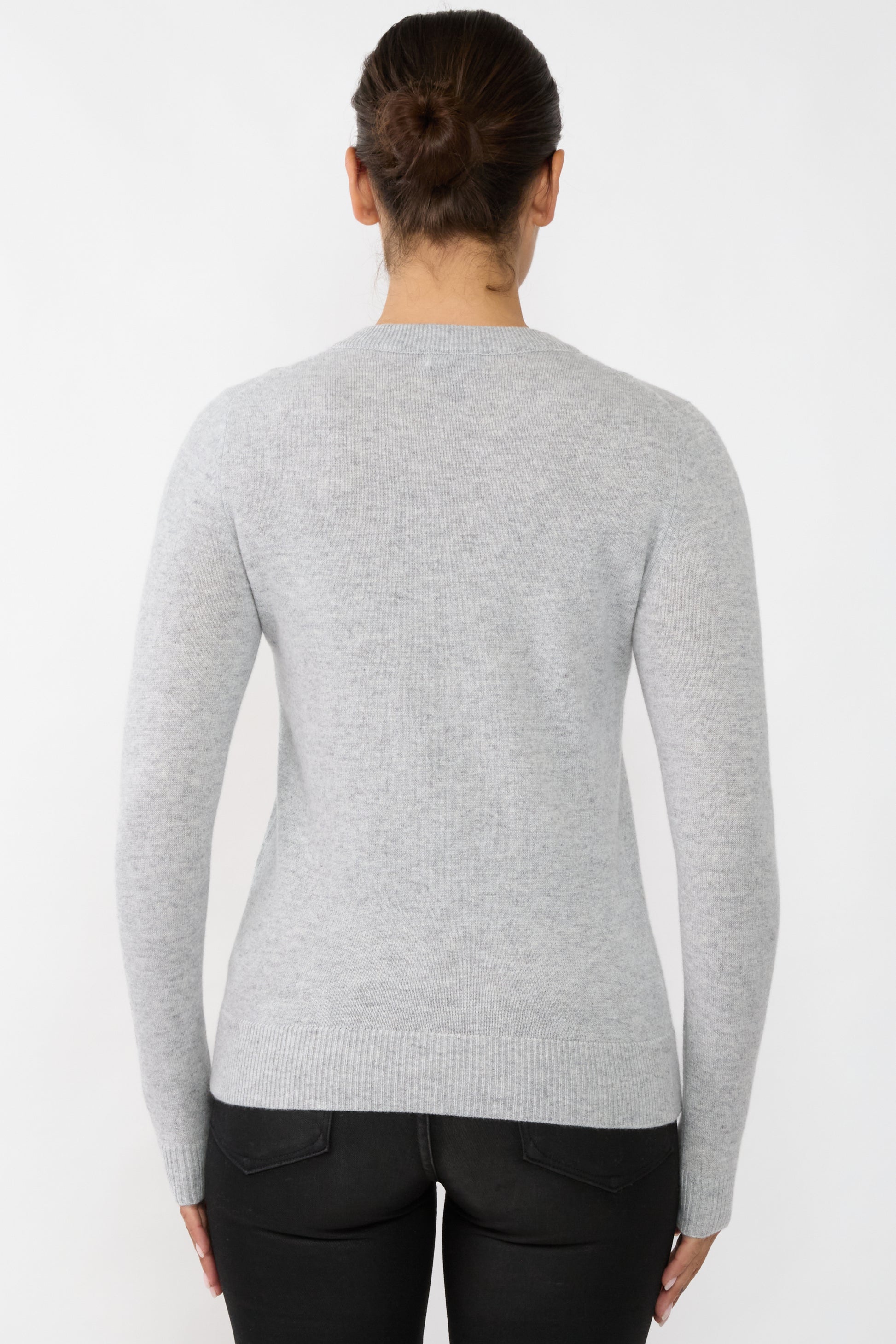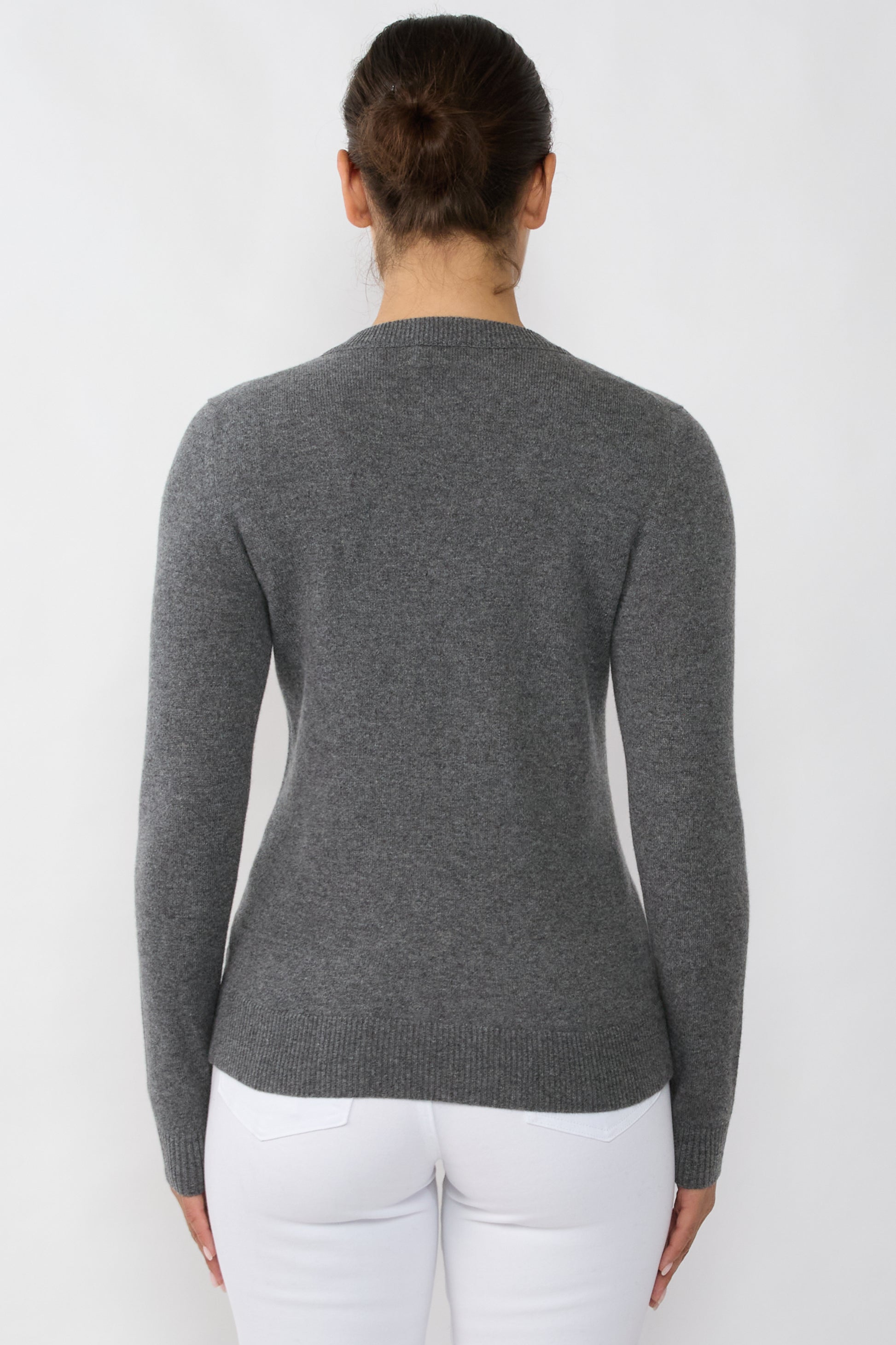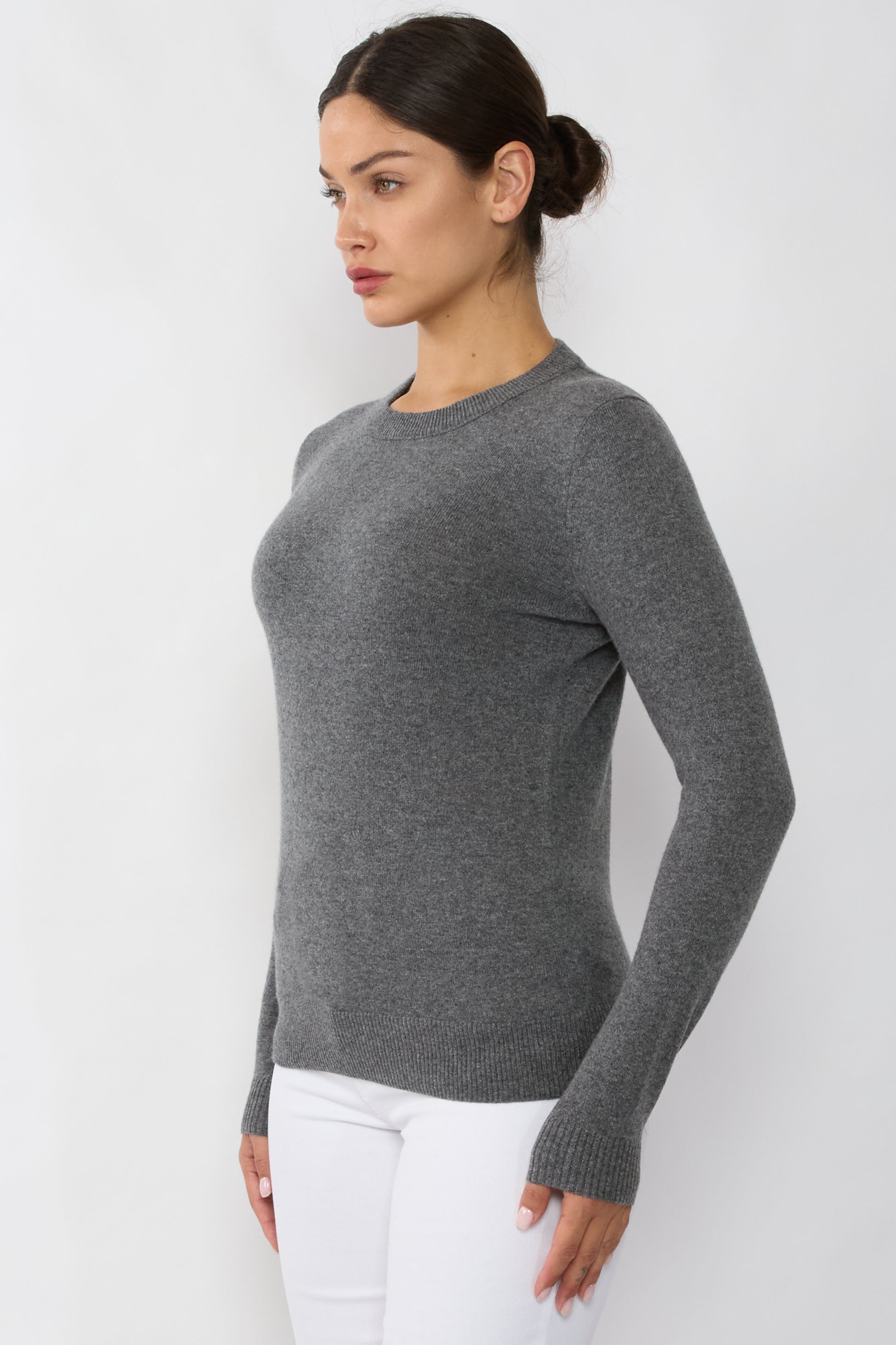 JENNIE LIU Women's 100% Pure Cashmere Long Sleeve Crew Neck Sweater