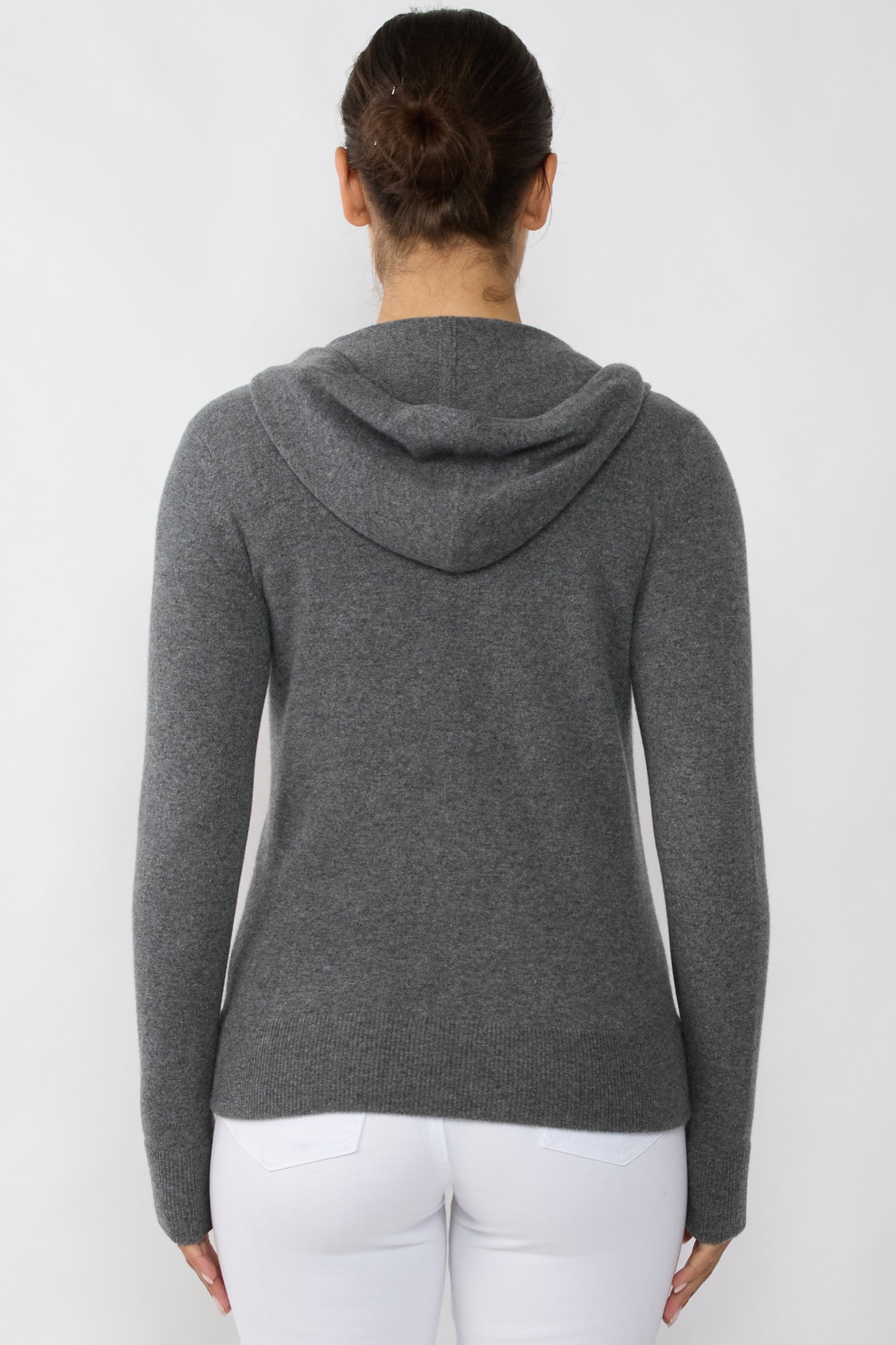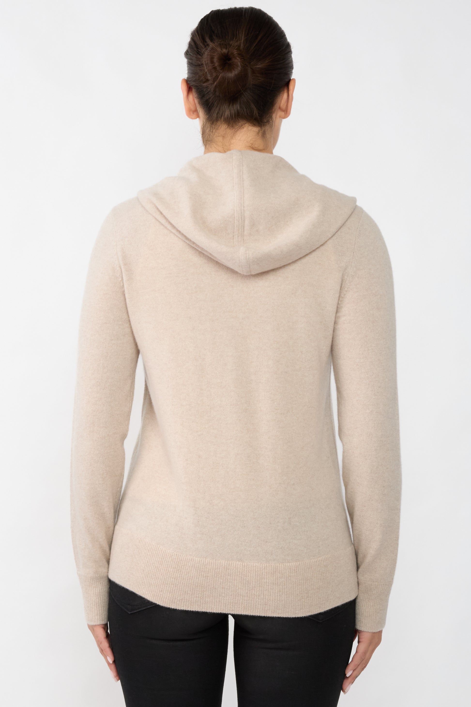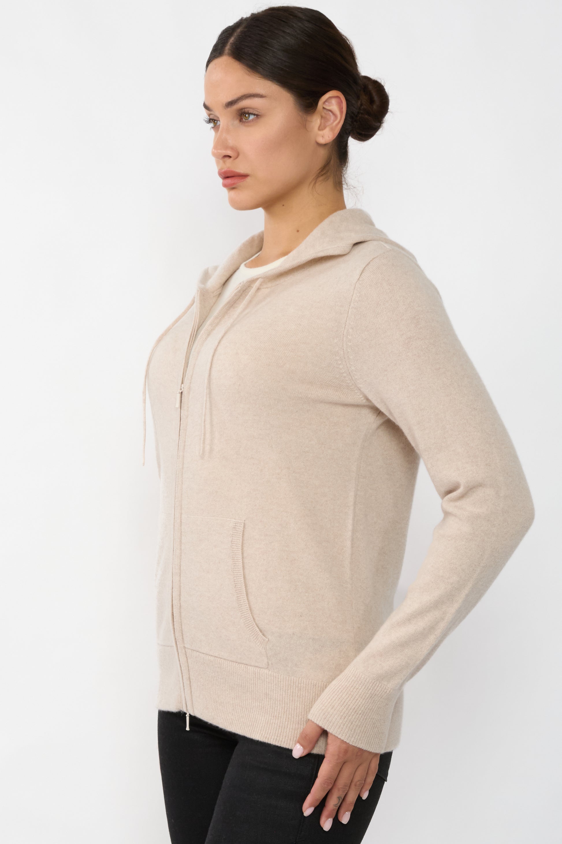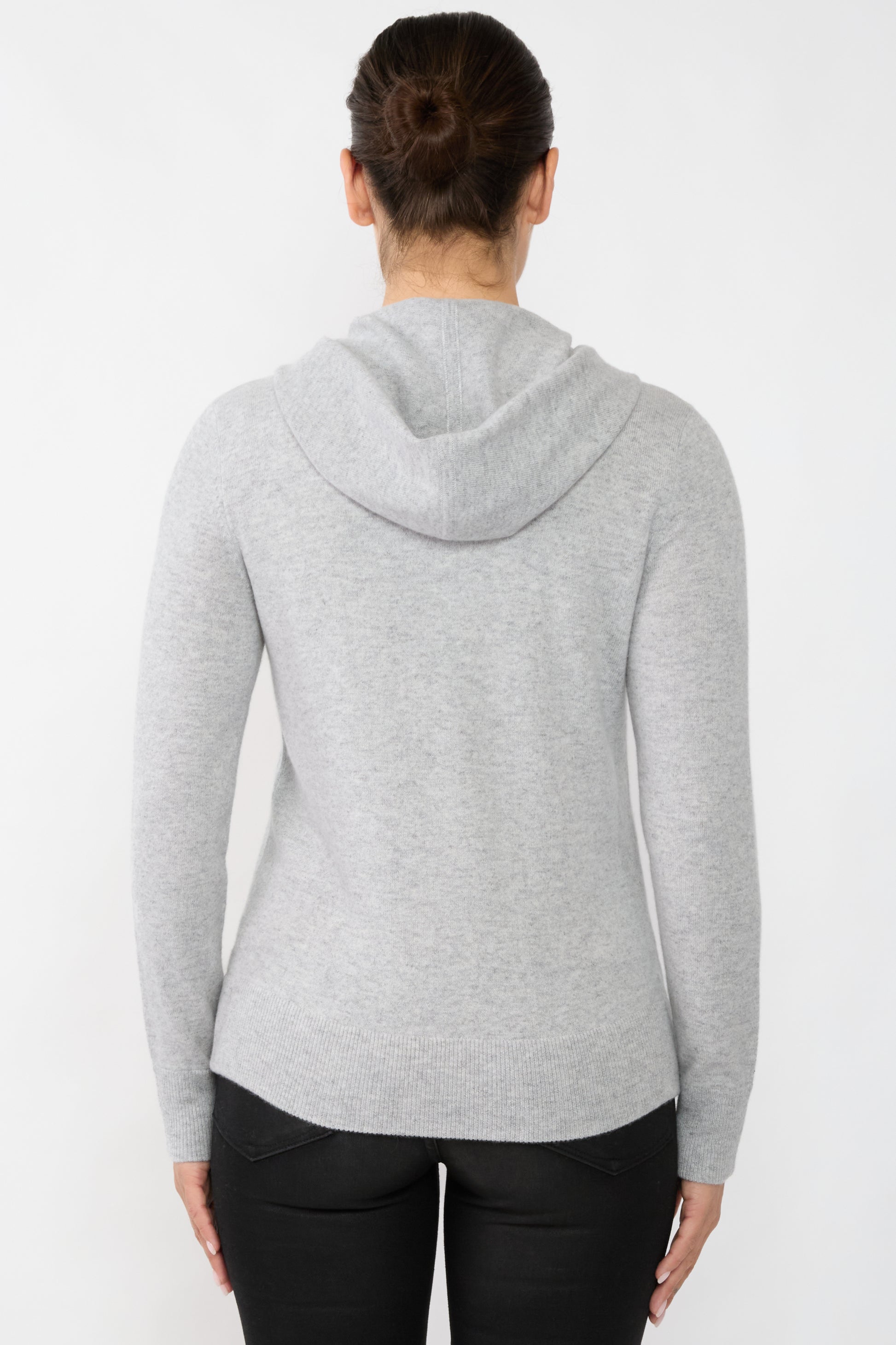 JENNIE LIU Women's 100% Pure Cashmere Long Sleeve Zip Hoodie Cardigan Sweater