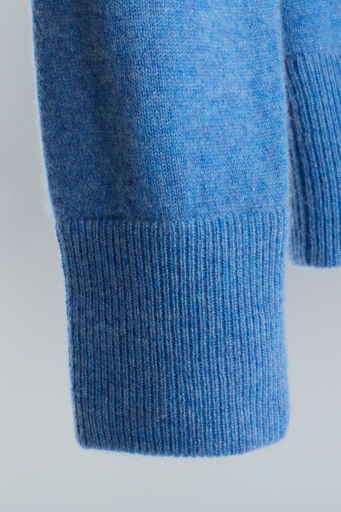 Substantial 12 gauge knit with tightly twisted 2-ply yarns in the finest cashmere exquisitely from Inner Mongolia.