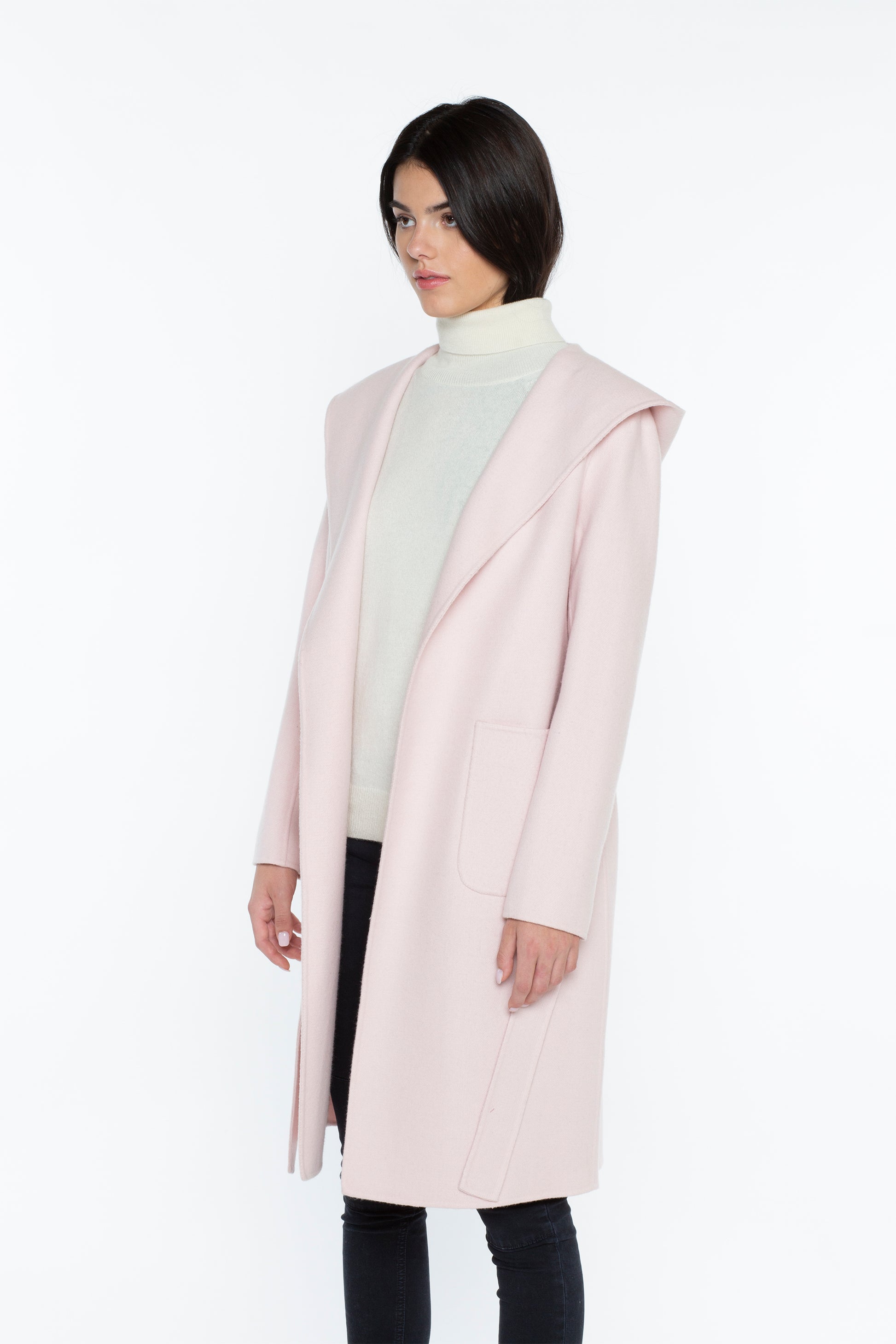 JENNIE LIU WOMEN'S CASHMERE WOOL DOUBLE FACE HOODED TRENCH COAT WITH BELT